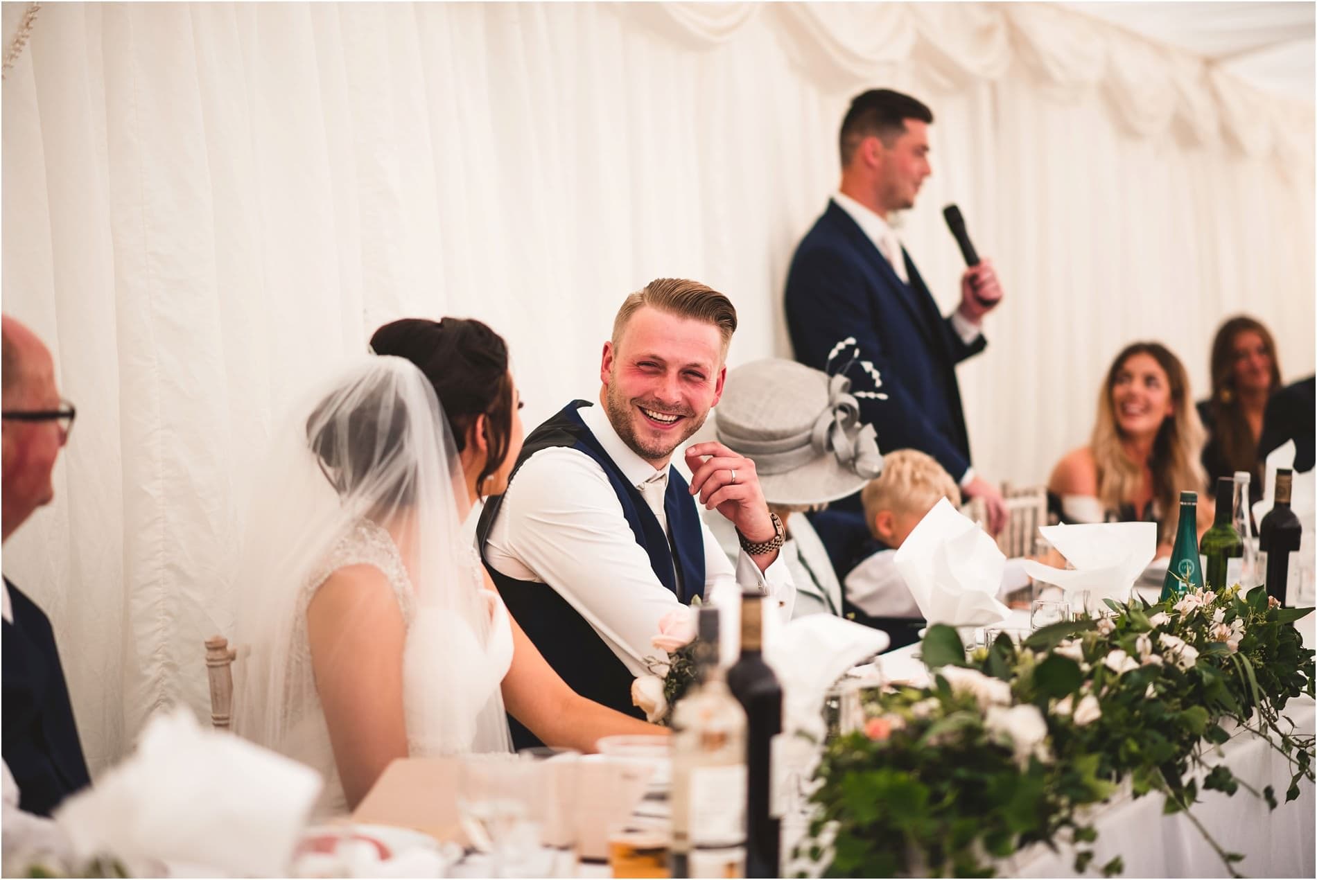 Whilst everyone began to enjoy the welcome drinks and garden games, I went to photograph the Marquee before the meal. It looked beautiful, you could really see how much time and effort went into organising and setting everything up. Once finished, we got moved onto the formal photos and got them finished just in time to sit down for speeches. I’ve heard plenty of lovely speeches in the past 5 years, and these ones were no exception. Starting with Harris Dad who talked about her childhood and when he was first introduced to Aaron. Followed by Aaron who did the sweetest most heartfelt speech and left everyone in tears- including himself! Then best man Charlie did an excellent job too!
